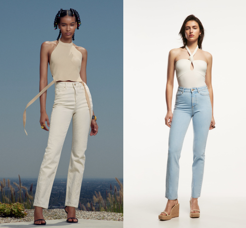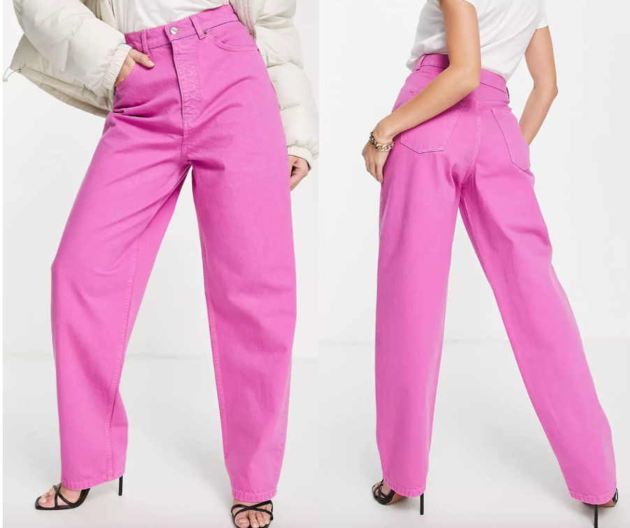 Mom jeans: Mom jeans, aneb staré dobré mrkváče. Pro mnoho typů postav značně problematický střih. Pokud máte široký trup bez definovaného pasu, či velké břicho, budou přes boky obří a nebudou vám slušet. Pokud máte naopak postavu tvarovanou příliš – s úzkým pasem, širokými boky a větším pozadím – pak vězte, že nic tyto partie opticky nerozšíří tak jako tento střih. Pokud se chcete vyhnout “přidaným” kilům navíc, volte přiléhavější varianty tohoto střihu.